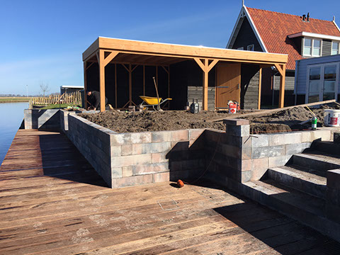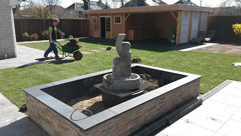 In een vrijblijvend gesprek bespreken we uw voorkeuren en vervolgens maken we een ontwerp en offerte voor u. Na uw akkoord gaan we aan de slag. Dat wil zeggen dat we alle werkzaamheden voor u verzorgen die u maar kunt bedenken bij het buitenleven. Hierbij kunt u denken aan; grondwerk, bestratingen , beplanting, erfafscheidingen vijver- en waterpartijen. kunstgras, gazonaanleg, hwa bouwconstructies van metselwerk of hout, zoals een schuur, prieel, overkapping, carport alles op maat en eventueel met verlichting.