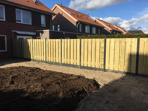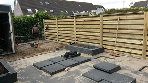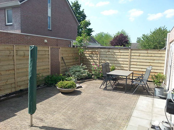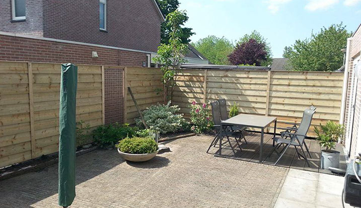 Om het geheel compleet te maken kunnen wij ook uw schuttingen/afrastering verzorgen. De mogelijkheden op dit gebied zijn inmiddels zo uitgebreid dat het zeker de moeite loont om ook hier eens over te komen informeren. Omdat wij met uitsluitend onze eigen vakmensen uw gehele tuin onderhanden nemen wordt u compleet ontzorgt. Van het leeghalen van de oude- tot het opleveren van uw nieuwe tuin, wij regelen het.